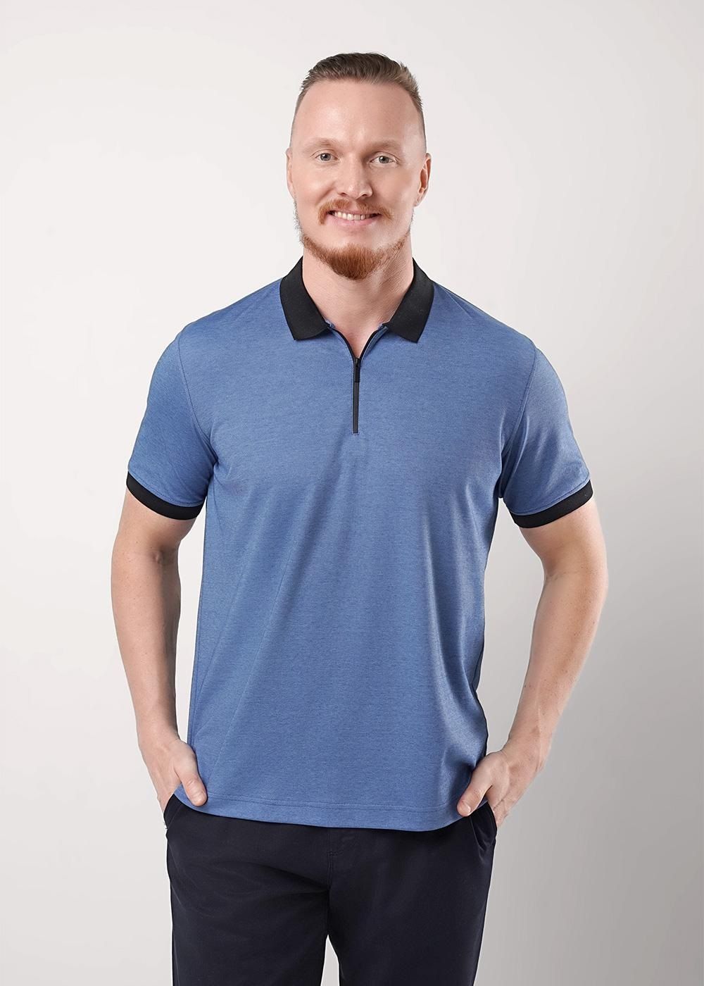 Футболка-поло с вязаными отделками. Модель с коротким рукавом на манжете и функциональной планкой на молнию. Модель можно дополнить брюками или джинсами. Отличный вариант для встреч с друзьями.
