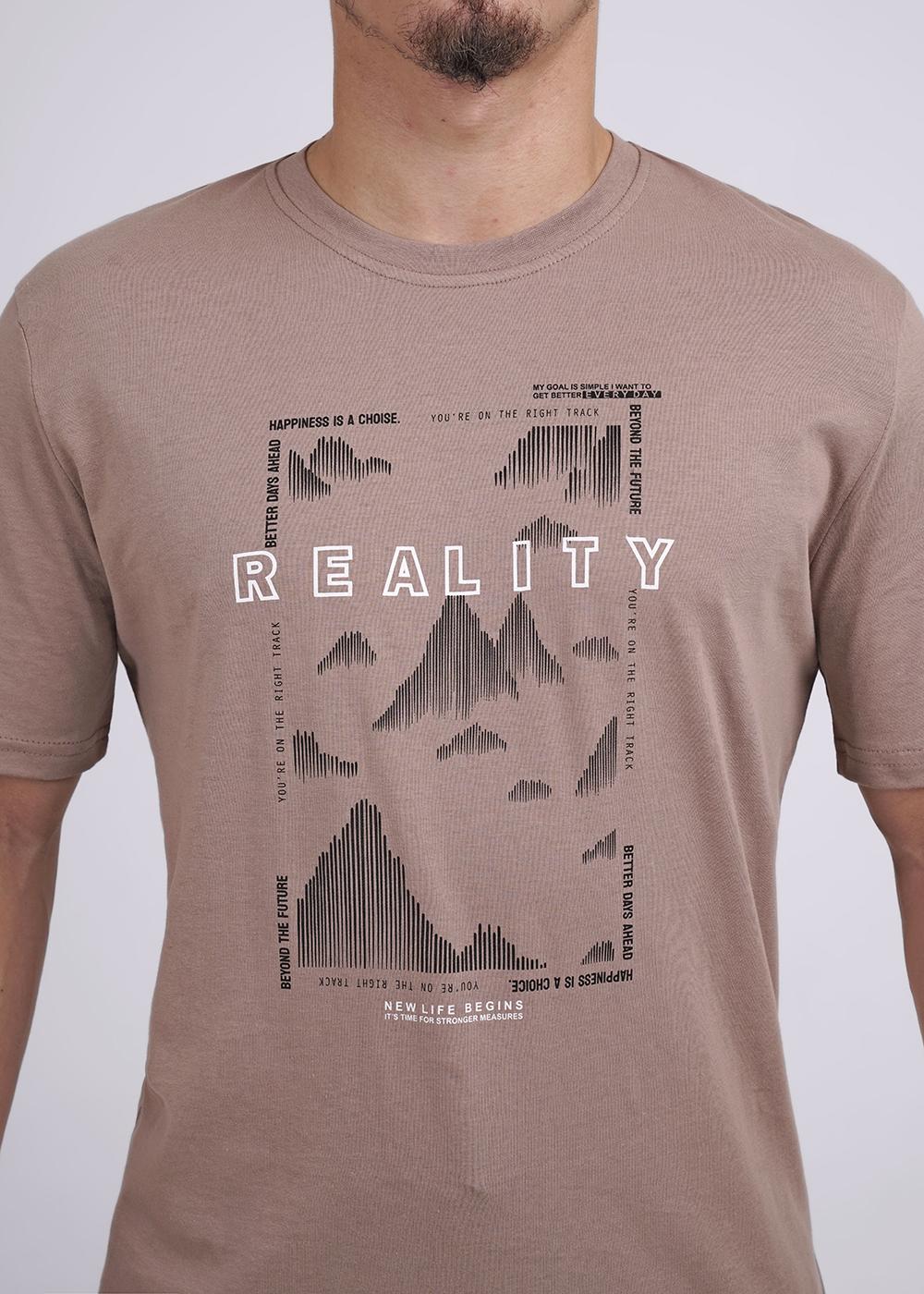 Футболка мужская прямого силуэта с втачным коротким рукавом. Горловина V-образная, обработана воротником из рибаны. Горловина спинки внутри укреплена бейкой из кулирки. Низ изделия и рукавов обработан швом в подгибку. На полочке ФОТОПРИНТ. Надпись переводится как "Реальность;Искусство иллюзии;Твое воображение". Модель рассчитана на рост 176-182см.