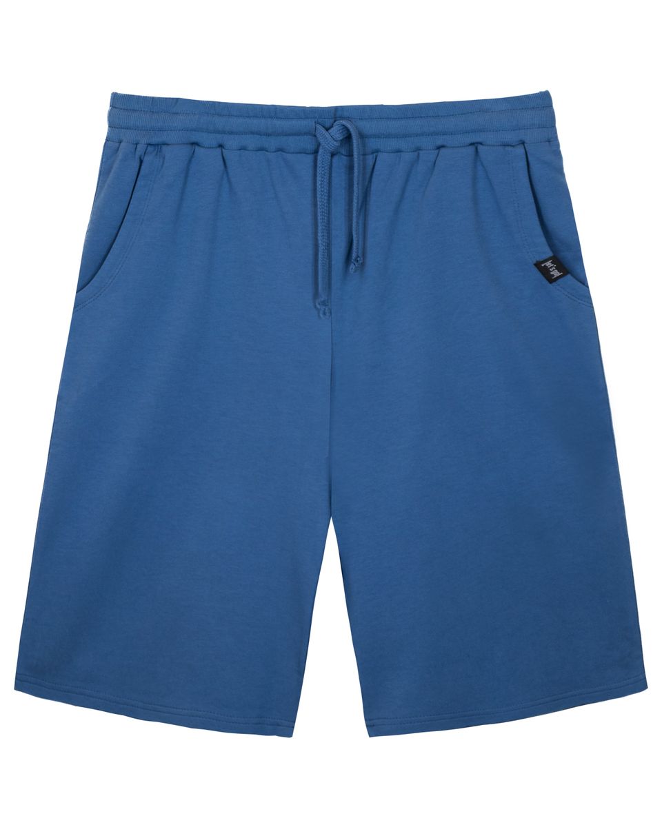 Шорты мужские прямого силуэта. Пояс отрезной, выполнен из кашкорсе, в цвет изделия, с эластичной тесьмой внутри, закрепленной в шов. По поясу шорт вставлен плоский утягивающий шнурок. На передней половинке шорт выполнены карманы с отрезным бочком. Низ изделия обработан швом в подгибку. На левом кармане вшивной элемент, закрепленный отстрочкой. Модель рассчитана на рост 176-182см.