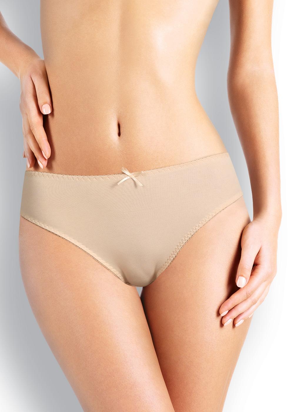 Трусы слипы женские из эластичного хлопкового полотна. Обработка краев - ажурная резинка с фестоном. По переду атласный бант.