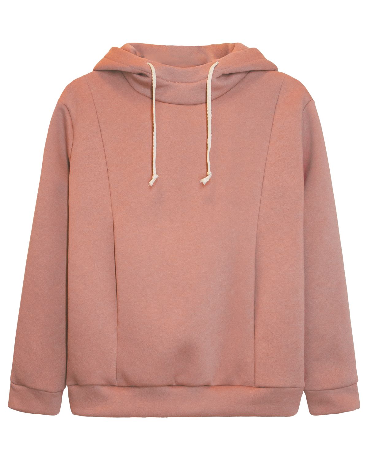 Комплет женский. Брюки женские прямого силуэта. Пояс отрезной, выполнен из основного полотна, с эластичной тесьмой внутри, шириной 5 см, тесьма закреплена в шов. По поясу брюк вставлен плоский утягивающий шнурок в цвет брюк, низ шнурка подвернут и застрочен, шнурок закреплен отстрочкой вдоль пояса. На изделии выполнены карманы с отрезным бочком и отлетной мешковиной, вход в карман обтачной. По низу изделия манжеты из основного полотна с эластичной тесьмой внутри в цвет изделия. Модель рассчитана на рост 164-170. Толстовка взрослая прямого силуэта с спущенным длинным рукавом. Горловина круглая с капюшоном. Капюшон состоит из 2 половин. Горловина спинки внутри обработана настрочной планкой из киперной ленты. С изнанки капюшона выполнен подклад из кулирки. По переднему срезу капюшона для утяжки вставлен утягивающий круглый канатный шнурок в цвет изделия, по низу шнурка узелок. Для выхода шнурка предусмотрены пробивные петли. Рукав заканчивается манжетой из основного полотна. По низу изделия пояс из основного пол