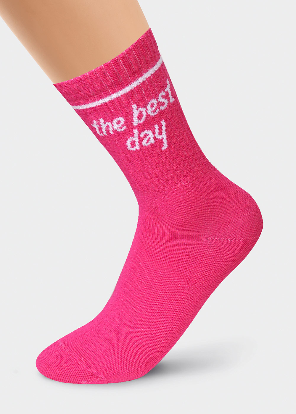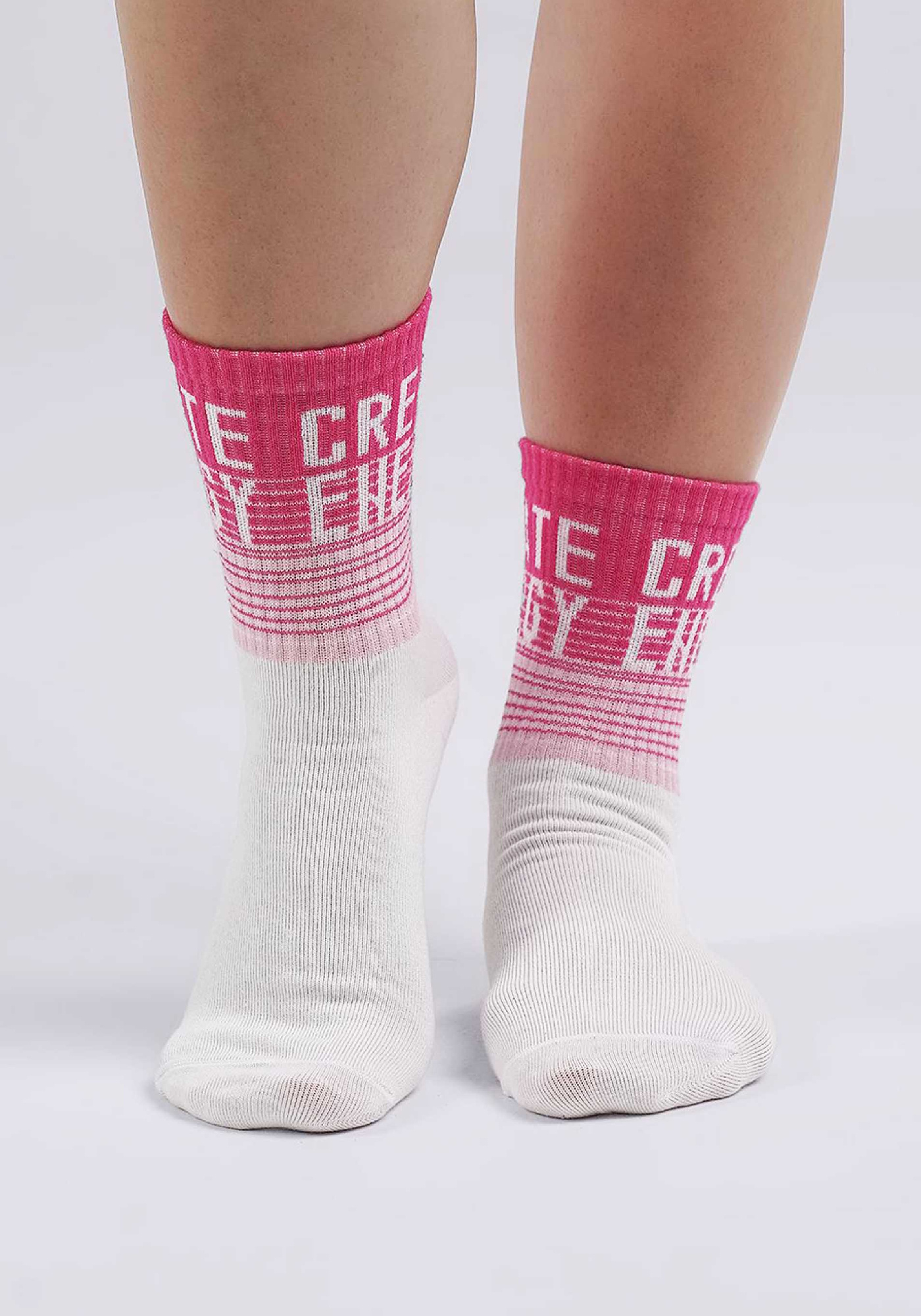 стильные яркие молодежные носки с переходом цветов и надписью "креативный, энергичный"
