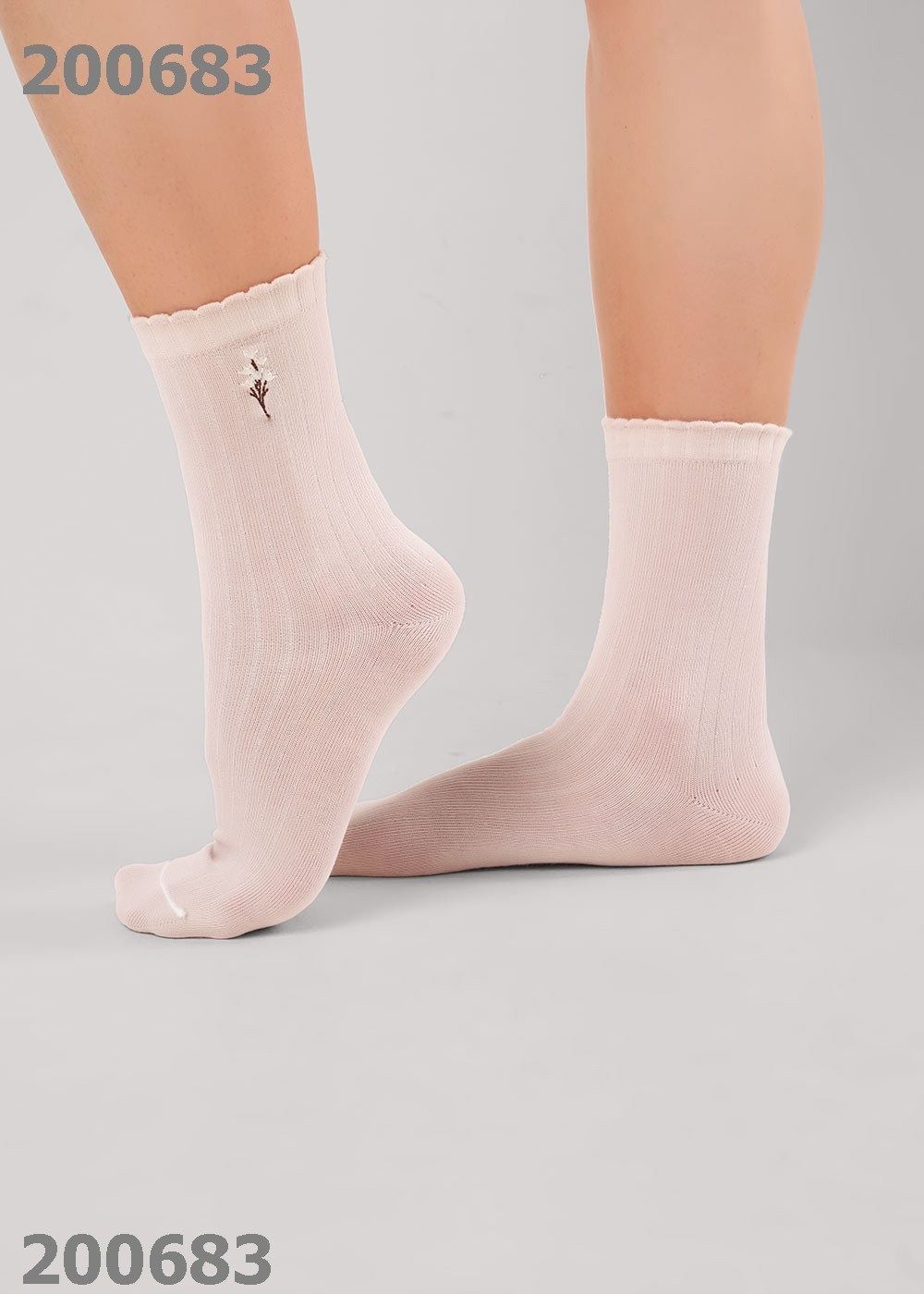 Женский носок с вышивкой цветок.