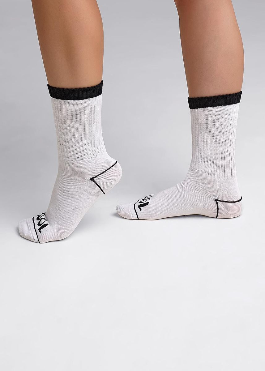 завышенные носки с яркими полосами и надписью