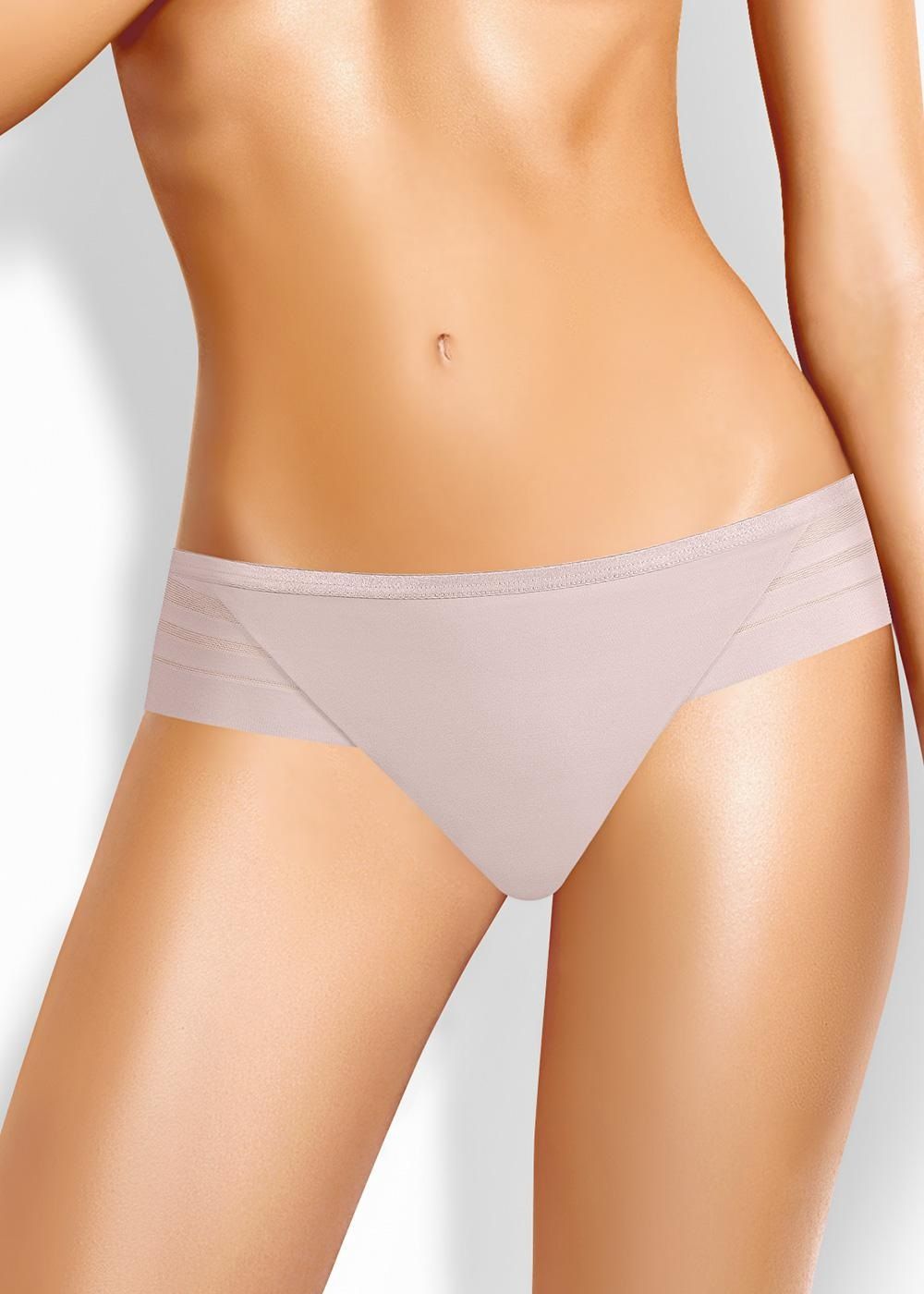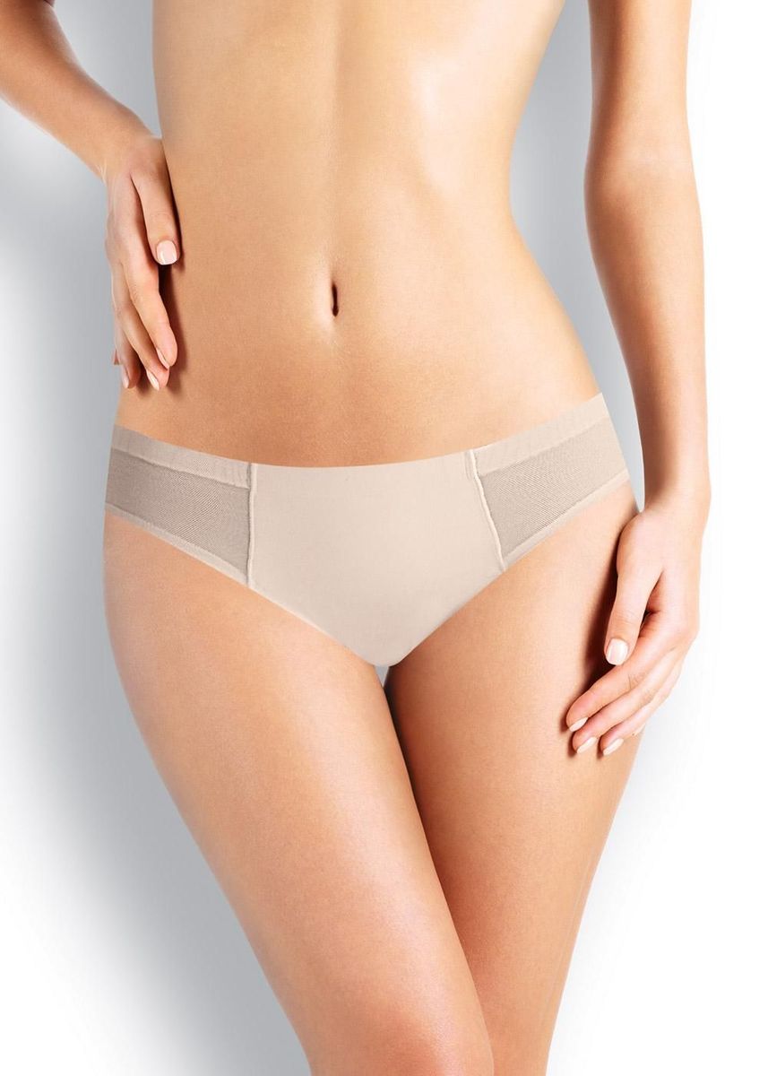 Трусы бикини женские из полиамида с эластаном. По переду вставки из сетки. Обработка краев - подклееный край. Хлопковая ластовица.