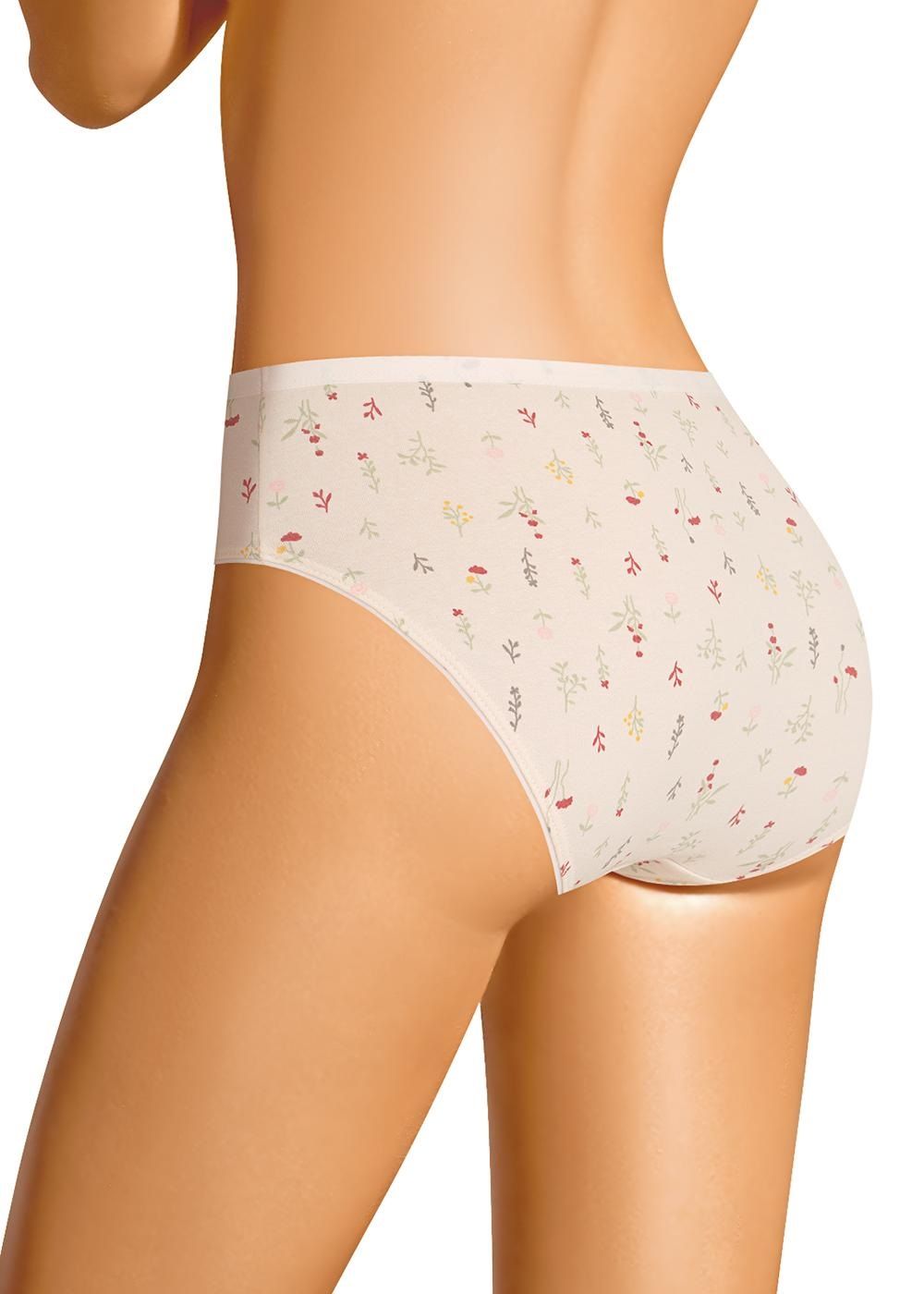 Трусы слипы женские из эластичного хлопкового полотна. Обработка краев по талии - широкая резинка в рубчик, по ноге - полуокантовка. Спереди принт.