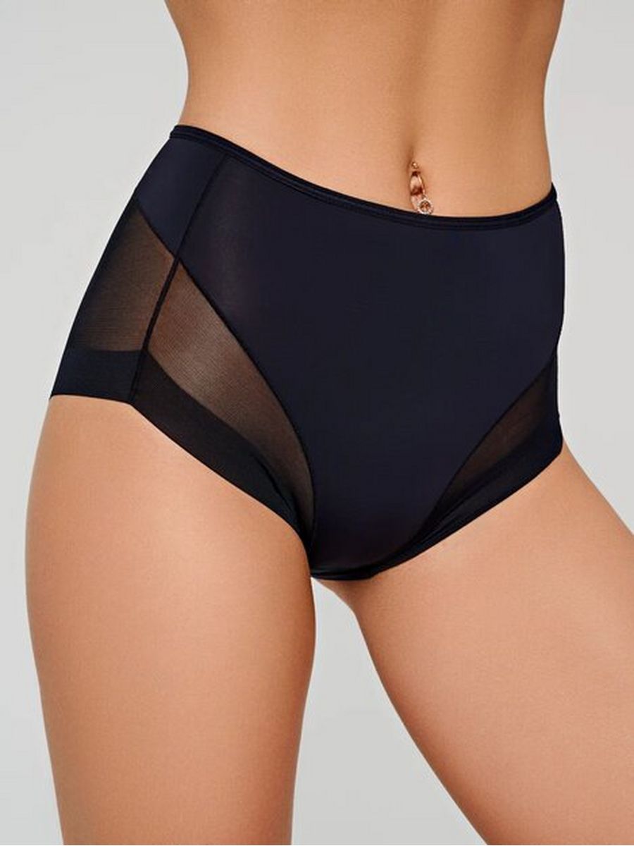 Трусы слипы от бренда MADAMODA, выполнены из полиамидного полотна нового поколения с высокой посадкой. По передней и задней части комбинированы вставкой из нежнейшей сетки.