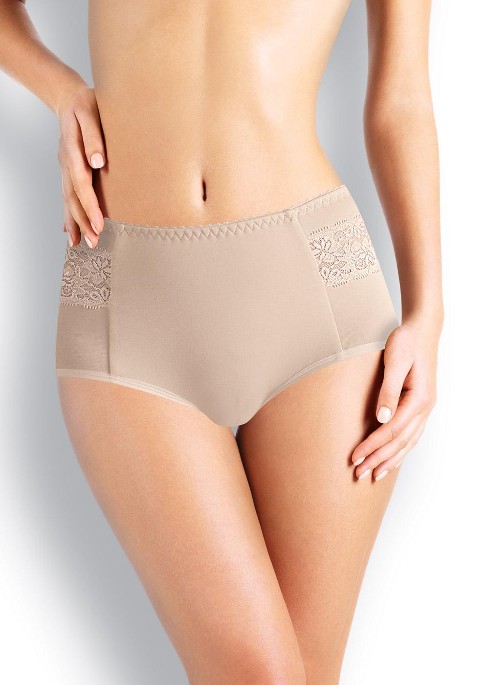 Трусы макси женские из плотного эластичного хлопкового полотна. Обработка краев - обтачками из основного полотна с плоским швом. По переду декоративные резы и вставки из кружева.