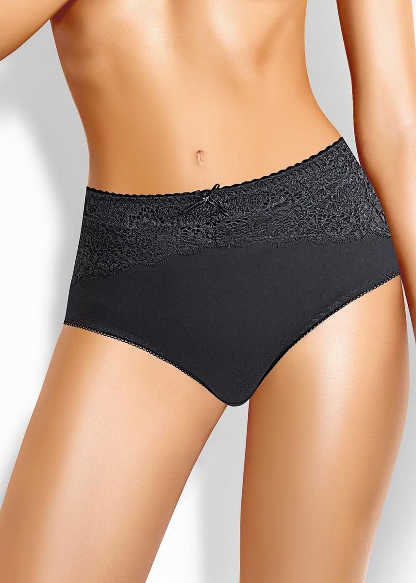 Трусы-макси женские из полиамида. Обработка краев - резинка с фестоном. По переду вставки из кружева и бант. Производство Китай.