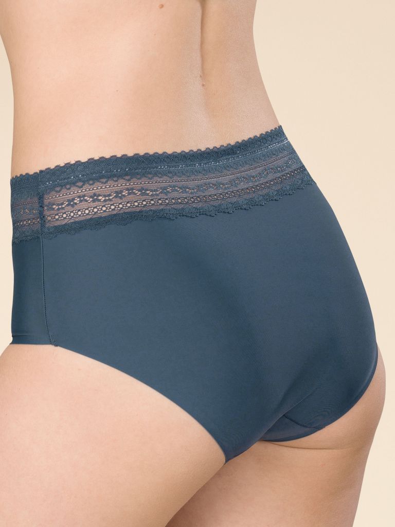 Состав: 80% полиамид, 20% эластан. Кружевные трусы слипы высокой посадки.