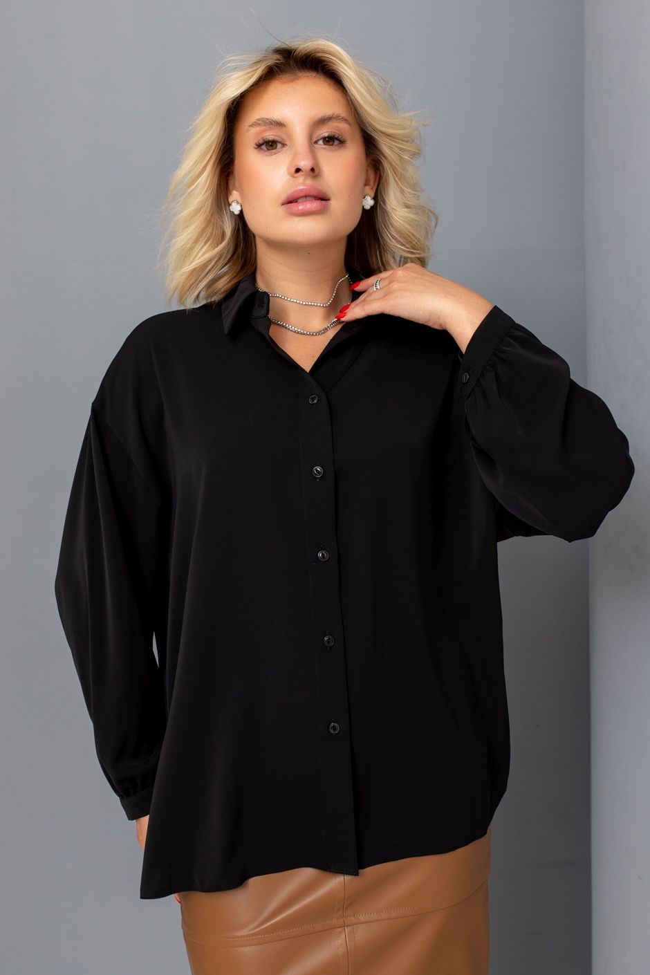 Блуза женская из гладкокрашеного тканого штапельного полотна, прямого силуэта, с горловиной овальной формы и цельнокроеными рукавами. Горловина окантована основным материалом, в боковых швах разрезы.