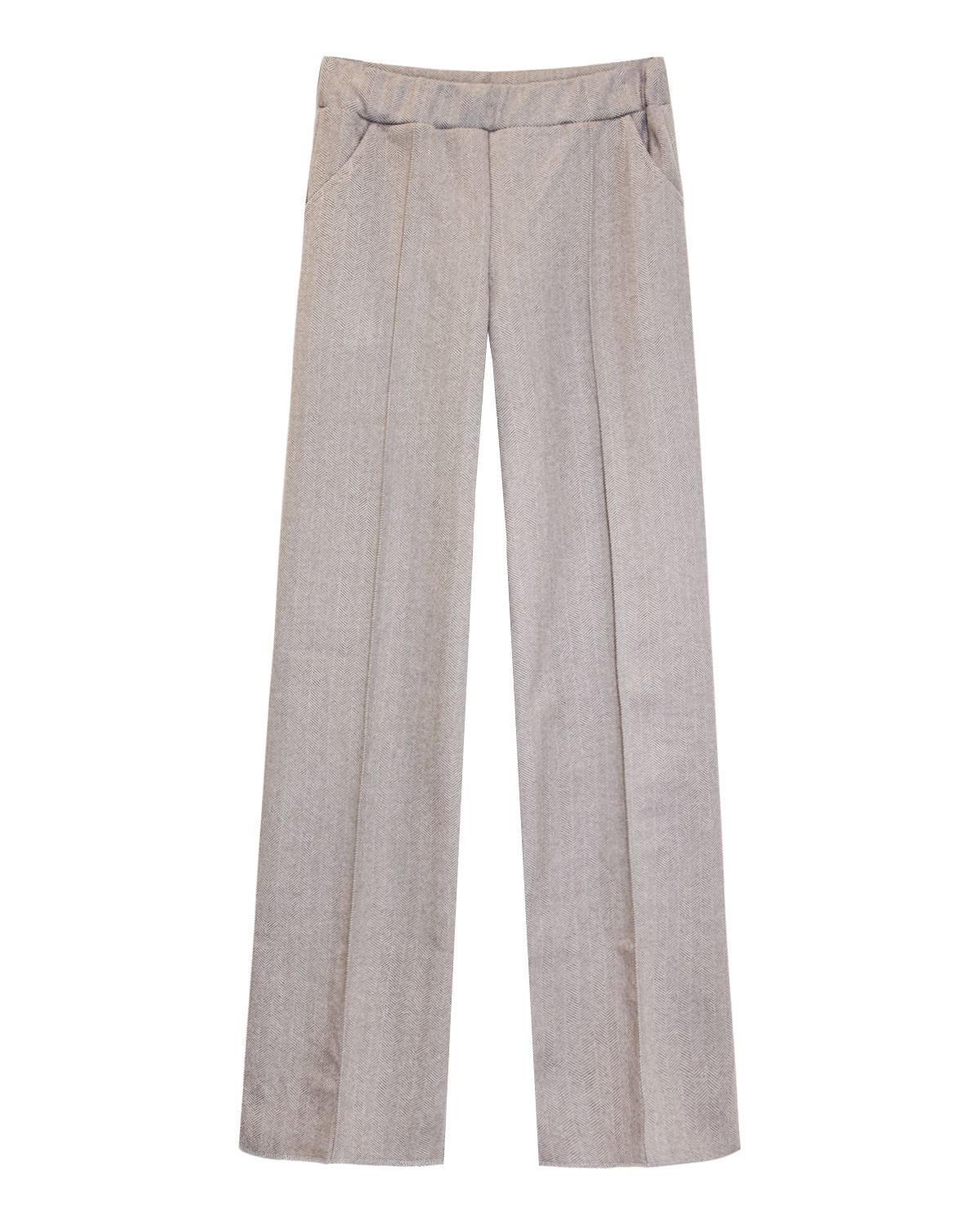 Классические серые брюки с кантом прямого покроя, идеально дополнят деловой образ. Аккуратный орнамент «елочка» разбавит классический нейтральный оттенок. Пояс отрезной, выполнен из основной ткани, с эластичной тесьмой внутри, что позволяет быть вещи практичной и удобной. По бокам вместительные карманы. Брюки с высокой талией легко сочетаются со свитерами, блузками, рубашками и жакетами
