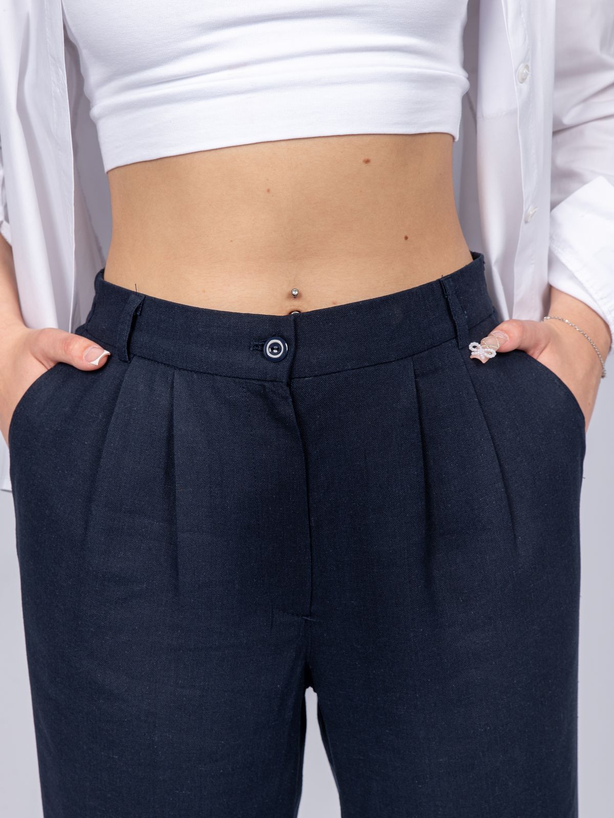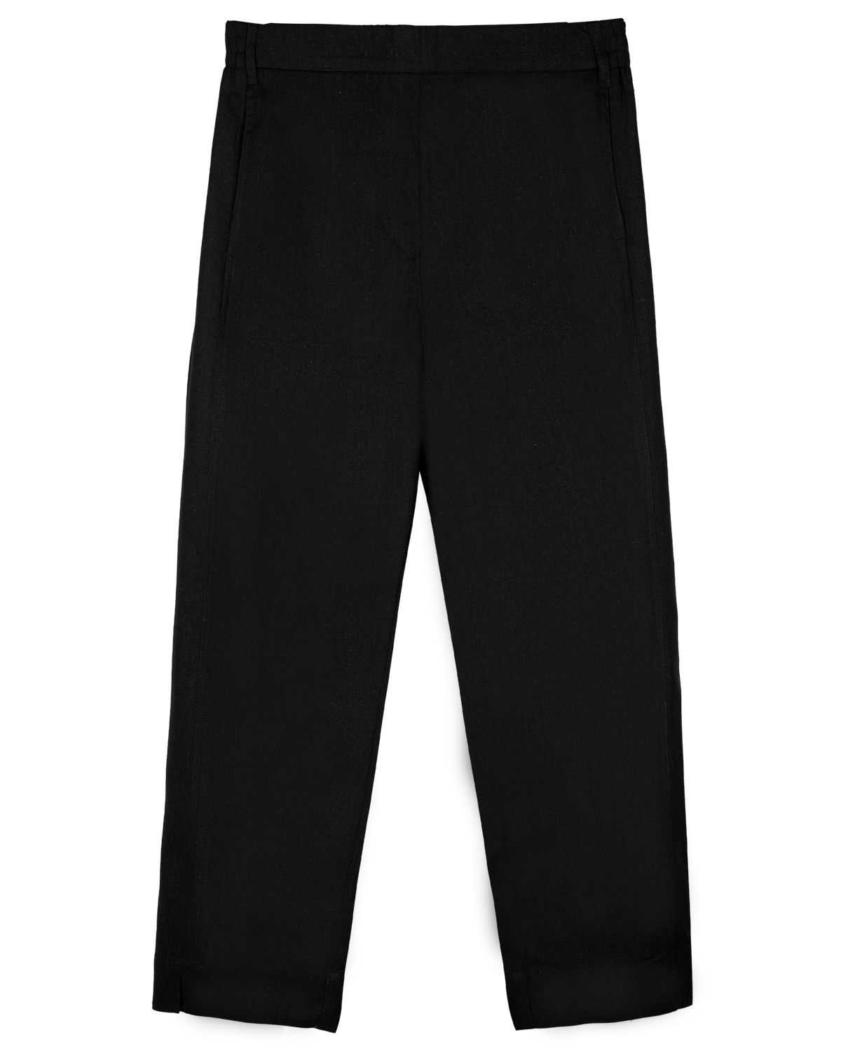 Повседневные хлопковые брюки идеально дополнят базовый гардероб любой девушки. Свободный силуэт и комфортная посадка делают эти брюки незаменимым атрибутов любого образа: на каждый день, на работу или на прогулку. Пояс на резинке, имитация гульфика, карманы на передней половинке брюк. На спинке отрезная кокетка, накладные карманы. Длина 7/8, по низу изделия манжет с декоративными разрезами. Средняя высота посадки. Изготовлены из облегченного хлопка с добавлением льняных нитей. Модель рассчитана на рост 164-170.