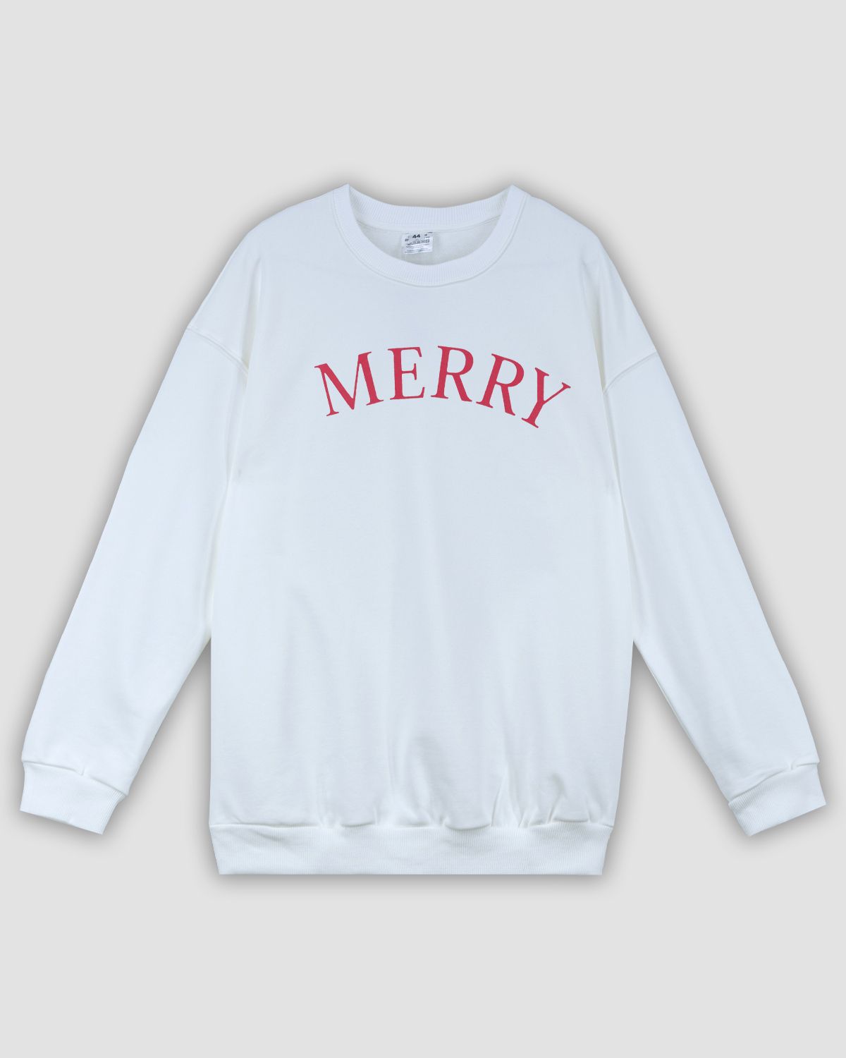 Джемпер взрослый, свободного кроя со спущенной линией плеча и длинным рукавом. Горловина круглая, обработана обтачкой из кашкорсе. По пройме и рукаву отделочная строчка на плоскошовной машине, припуск смотрит на полочку и спинку. Низ рукава и низ изделия заканчивается манжетом из кашкорсе. На полочке принт ШЕЛКОГРАФИЯ