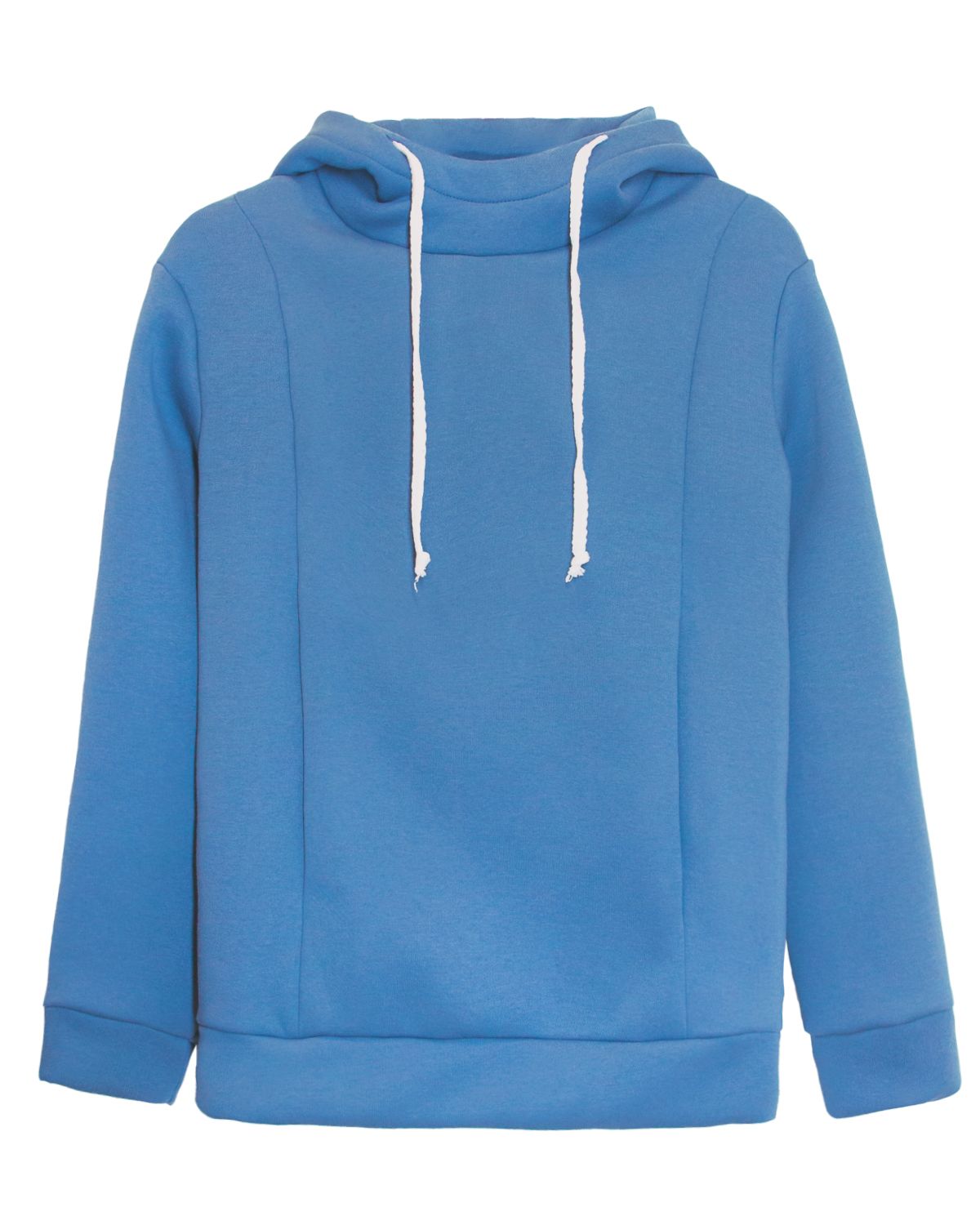 Изделия прямого силуэта, умеренного объема, длиной до середины бедра. Перед с рельефами из плечевого шва до низа изделия (рельеф смещен относительно выступающей точки грудной железы), с карманами в шве рельефов (с общей мешковиной по типу «кенгуру»). Рукав втачной, длинный, одношовный, низ рукава обработан притачной манжетой из основного полотна. Линия проймы спущена относительно плечевой точки на 5 см. Капюшон умеренного объема, шлемовидный, с отрезной центральной частью, с подкладкой из основного материала; в переднем срезе капюшона обработана кулиска с плавной регулировкой прилегания при помощи шнура. Для выведения на лицевую сторону концов шнура установлены петли. Низ изделия обработан притачным поясом из основного полотна. Модель рассчитана на рост 164-170см.