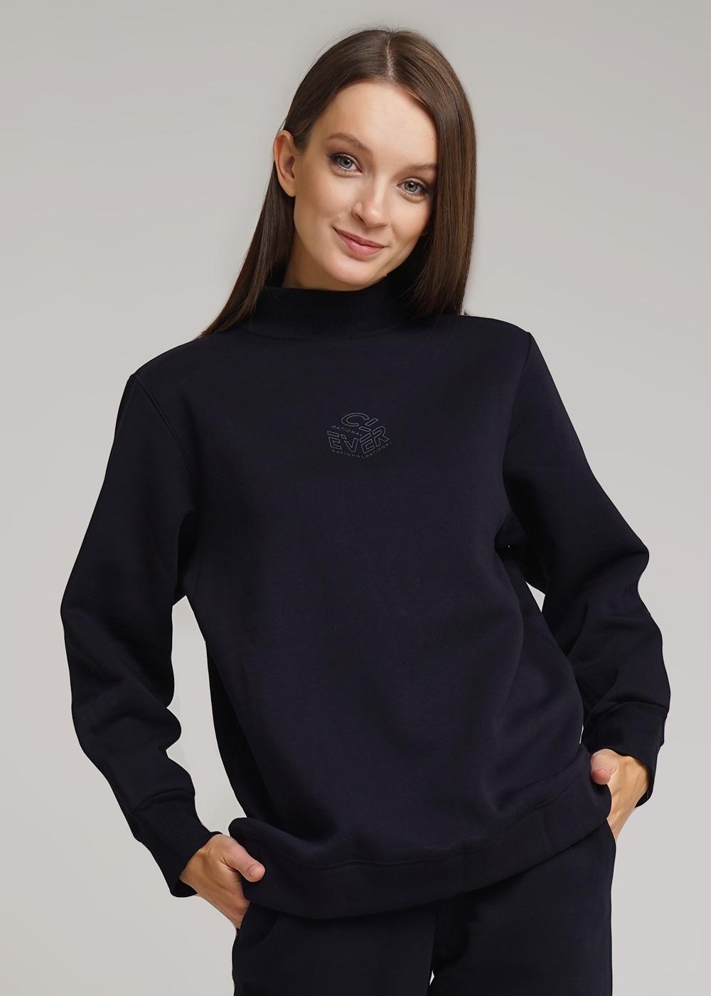 Толстовка из футера прямого, свободного кроя с воротником-стойкой и длинным рукавом. Изделие декорировано принтом на полочке.