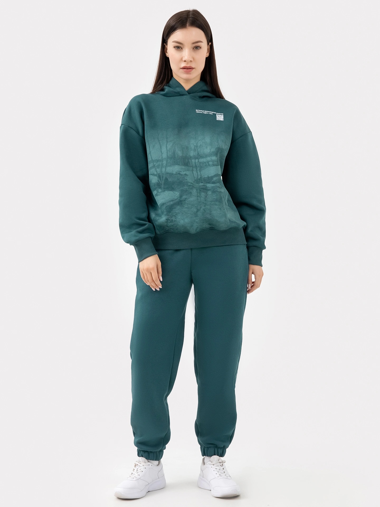 Теплый и комфортный свитшот из футера с начёсoм всегда будет актуальным и располагающим к себе. Он обречен стать любимой одеждой, которую не захочется снимать. Мягкая основа с начесом на изнанке создает особый микроклимат и не пропускает холод. Свитшот не вытягивается, не линяет и выдерживает многократные стирки. Изделие оверсайз-силуэта имеет прямой крой, спущенную линию плеча, длинные рукава. Вместительные карманы согреют руки в самый холодный день. Воротник, низ и манжеты выполнены из эластичной ткани кашкорсе, фиксирующей объем. Свободный объём не стесняет движений и комфортно садится по фигуре.