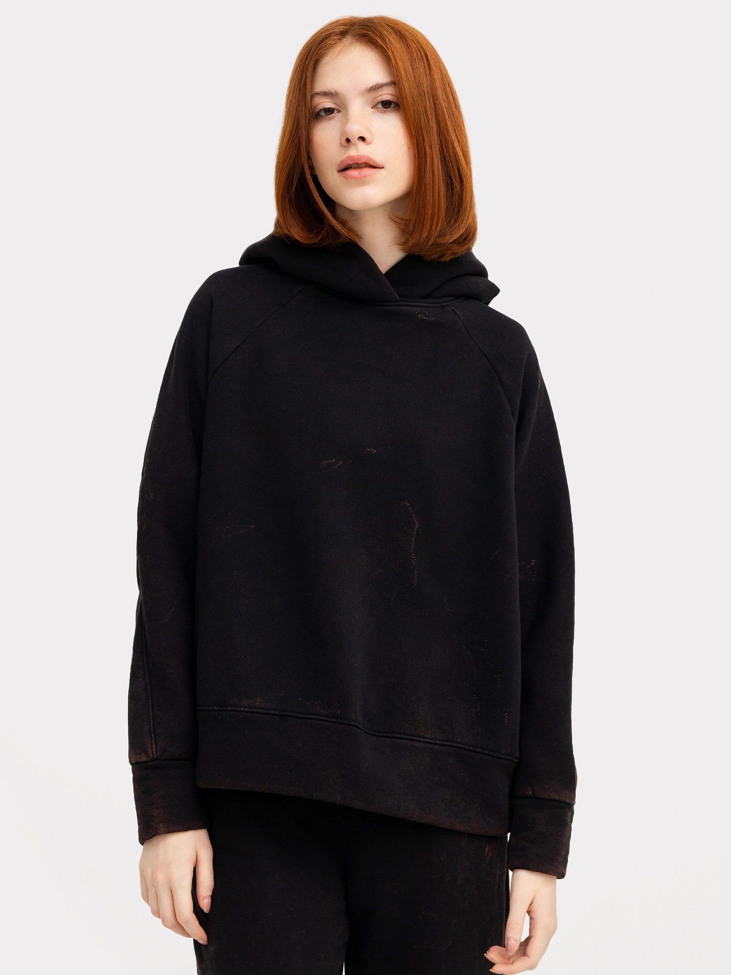 Худи из мягкого хлопкового футера с начёсом с рукавами реглан имеет капюшон карман «в швах» и широкие манжеты, благодаря чему модель прекрасно сохраняет тепло тела. Популярный oversize и мягкая утепленная изнанка – составляющие городского стиля и повышенного комфорта. Быть модной с заботой о себе можно! Её можно носить даже дома, когда не хватает уюта и рядом нет того самого, кто бы мог крепко прижать к себе!