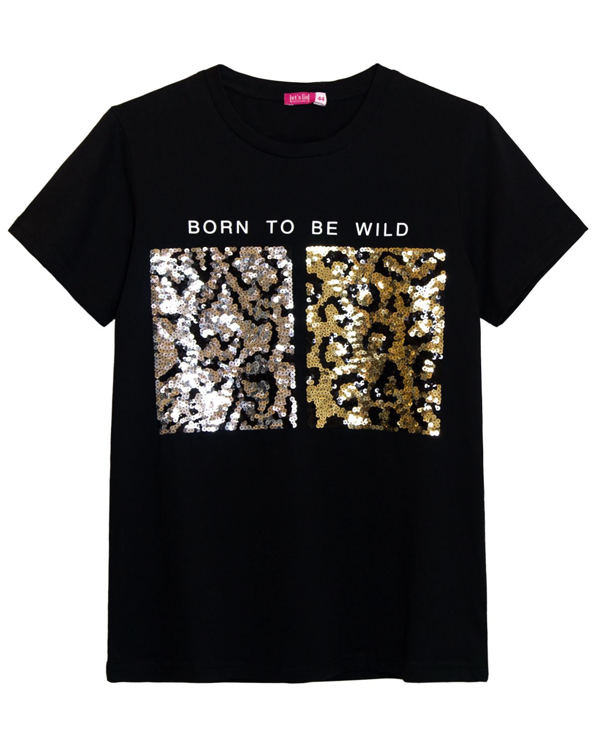 Футболка женская прямого силуэта с втачным коротким рукавом. Горловина круглая, обработана воротником из кулирки, в цвет изделия. Горловина спинки внутри обработана настрочной планкой из кулирки. Низ изделия и рукавов обработан швом вподгибку. На полочке шелкография+вышивка пайетками. Полотно кулирная гладь пенье. Модель рассчитана на рост 164-170см.