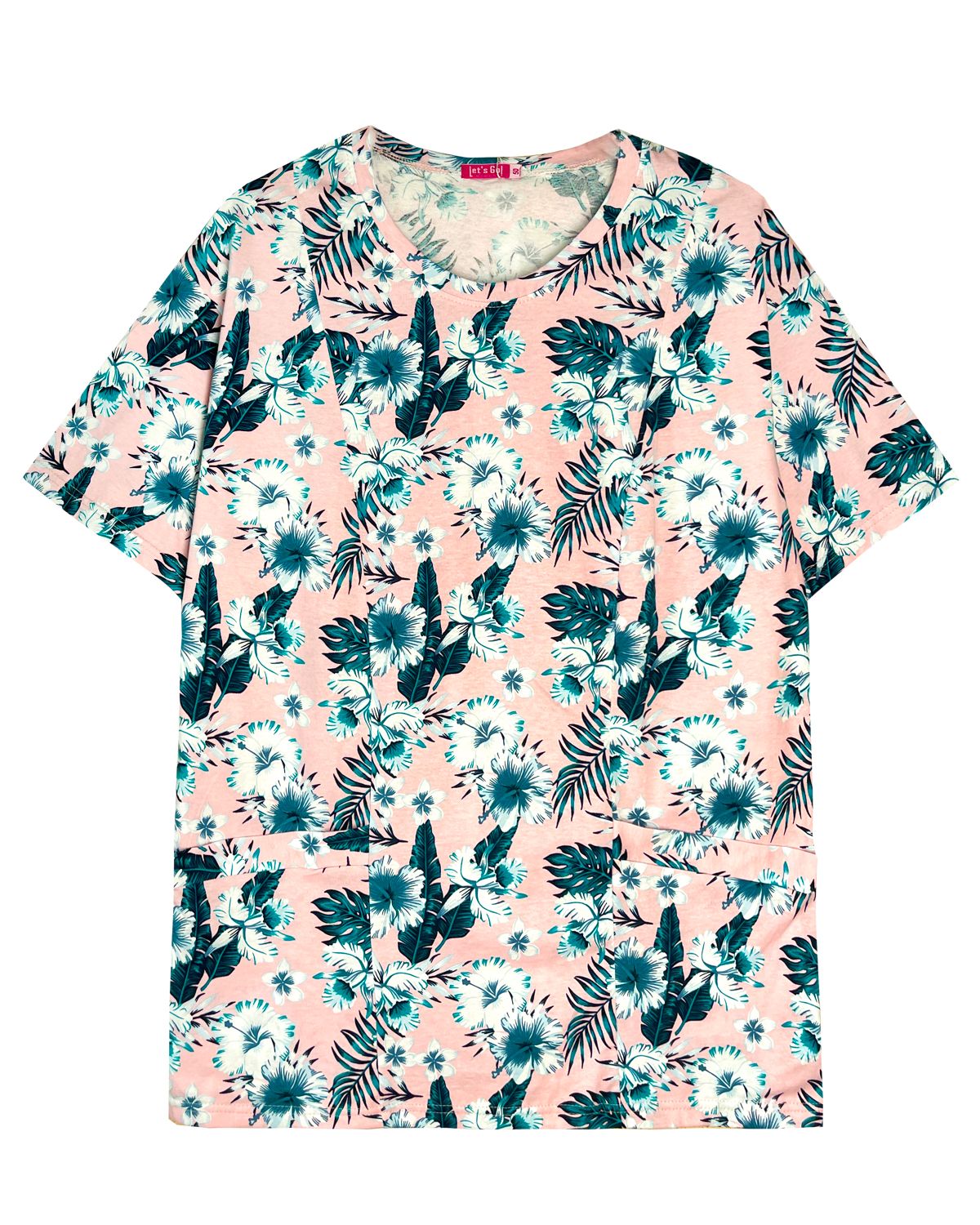 Футболка свободного силуэта из набивного полотна со спущенным плечом коротким рукавом и накладными карманами. Горловина круглая, обработана обтачкой из основного полотна. На передней полочке рельефыи накладные карманы с обтачкой. Низ изделия и рукавов обработан швом вподгибку. Модель рассчитана на рост 164-170см.